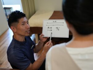 「~の筋肉が緩んだ」「ここのつらさがなくなった」「~の曲がる動きが大きくなった」などお体に変化が起きていることを感じていただきながら施術するよう心がけています。たとえその場で変化がわかりにくい症状でも、施術を続けることで「どのように症状の感じ方が変化していくか」をご説明し、お体の変化をできるだけ感じていただけるよう心がけています。