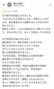 この時間に患者様としっかりコミュニケーションをとり、緊張をほぐし、ゆったりした気持ちで施術を受けていただけるよう心がけています。
