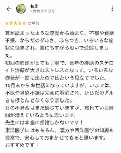 ★耳の詰まり、不眠、食欲不振、体のだるさ、ふらつきが解消されました!